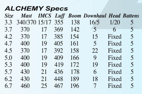 La Alchemy sobresale en todas las condiciones de olas y viento y en condiciones bump-n-jump. La increíble habilidad para ceñir rápidamente a barlovento y su perfecto equilibrio facilita las maniobras aéreas y la propensión a los saltos, brindando siempre control y estabilidad. Cubriendo y superando las capacidades tradicionales de una vela de "power wave", la Alchemy puede ser utilizada tranquilamente en cualquier condición, desde bump-and-jump hasta side-shore sin ningún esfuerzo.